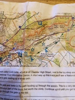 5. This is the actual map we used for the now infamous Cheddar Gorge walk…a bit the worse for weather. The walking route is the red line that goes around in a oval type shape. When the infamous event occurred we were walking along towards the top right hand corner of the route at the top of the Gorge. Can you read the location in the top right hand corner…Ironic or what !!!. I didn’t notice this until I was empting my coat pocket last night. ( in case you can’t read it, the area is called “Bone Hole” …they have now changed it to “Broken Bone Hole”)